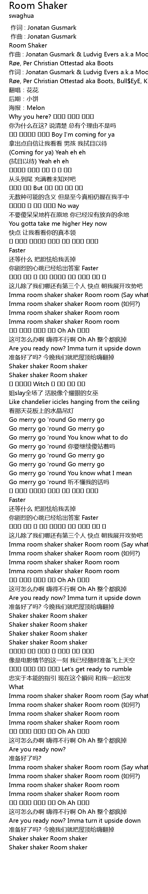 | [02:45.798] | Imma room shaker shaker Room room ru he? |