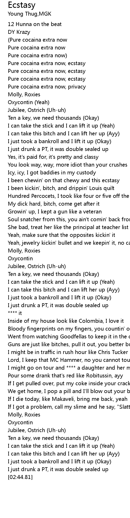 I been chewin' on that chewy and this ecstasy |