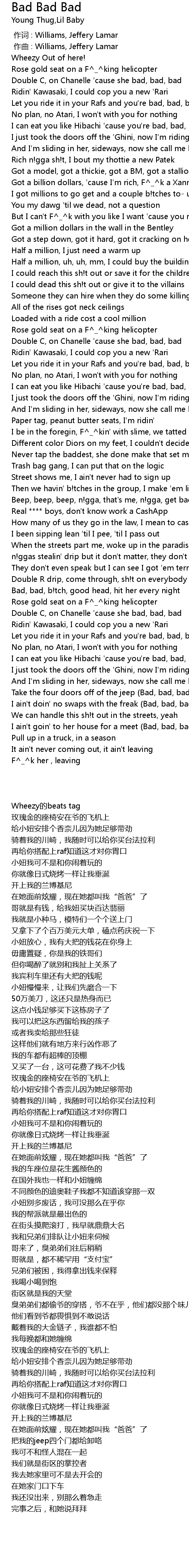 | [01:49.17] | Bad, bad, b!tch, good head, hit her every night |
