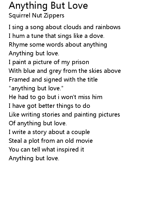| "anything but love." | |