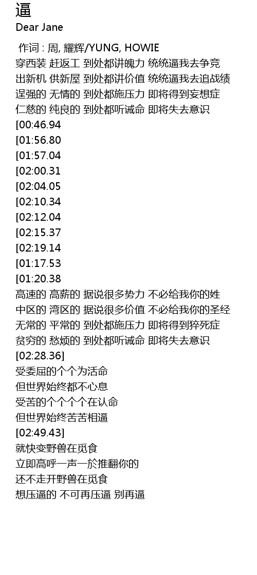 | [03:00.95] | 想压逼的 不可再压逼 别再逼 |