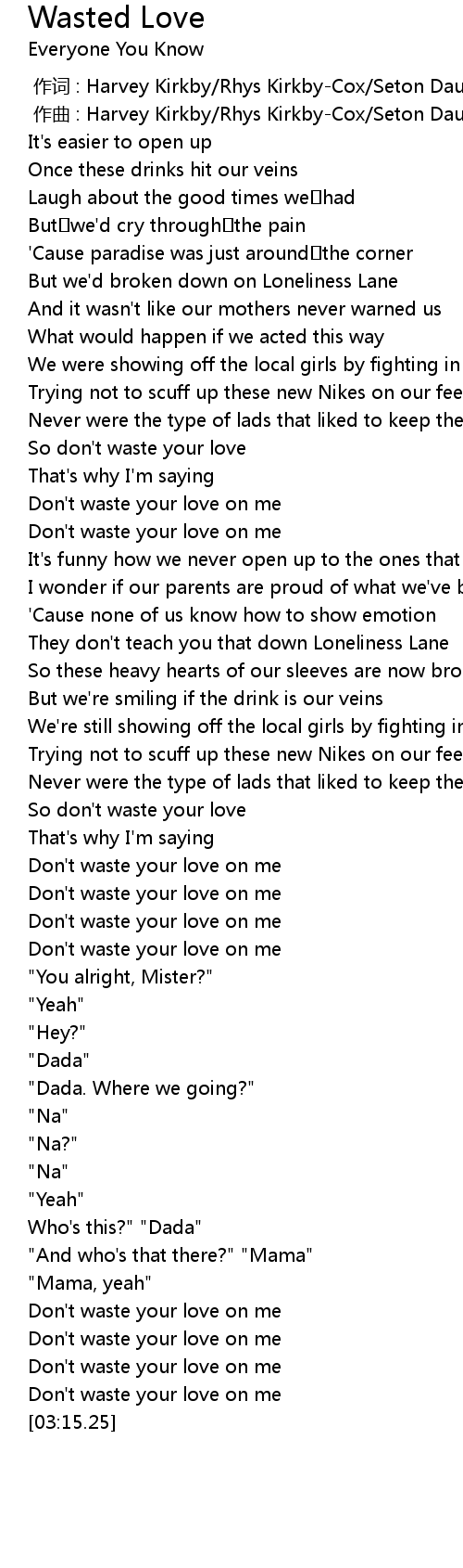 | [03:01.00] | Don't waste your love on me |