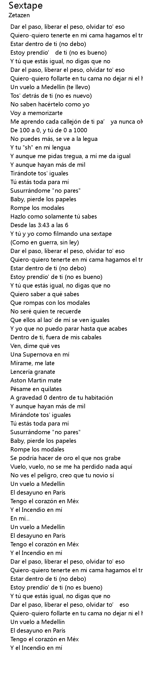 | [00:38.065] | Un vuelo a Medellín (te llevo) |