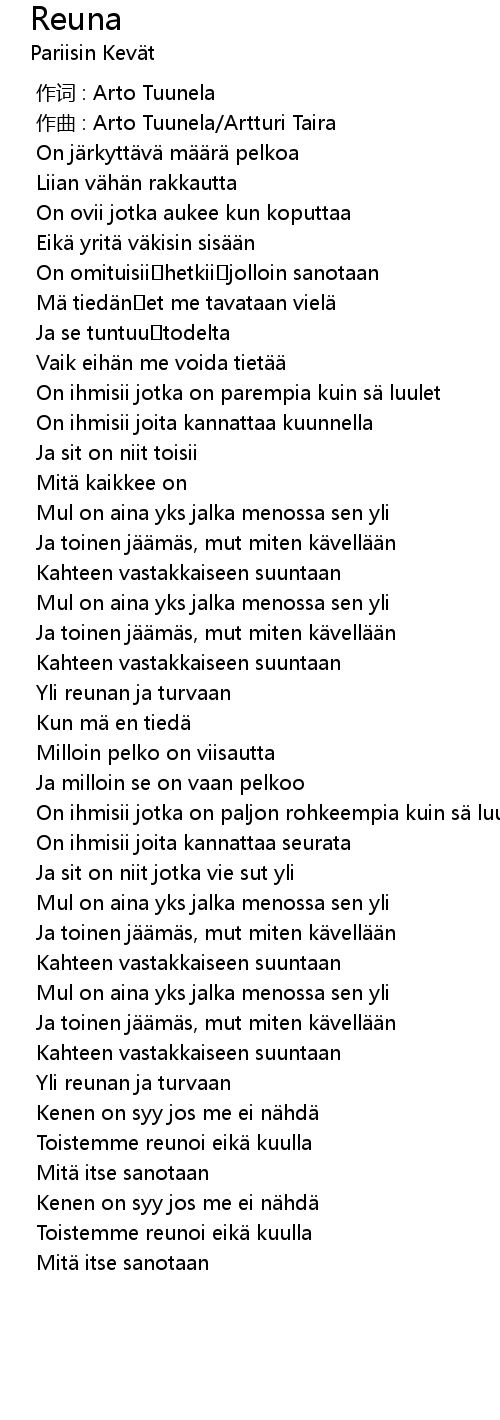 | 歌曲 | Reuna |