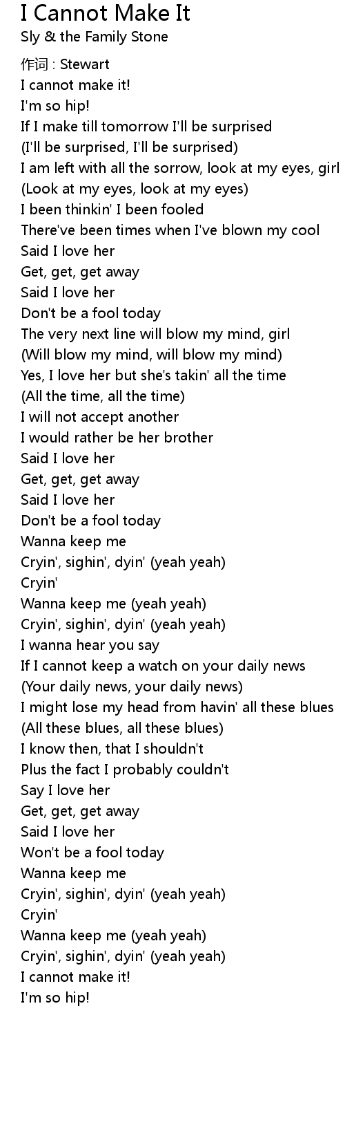 | 歌曲 | I Cannot Make It |