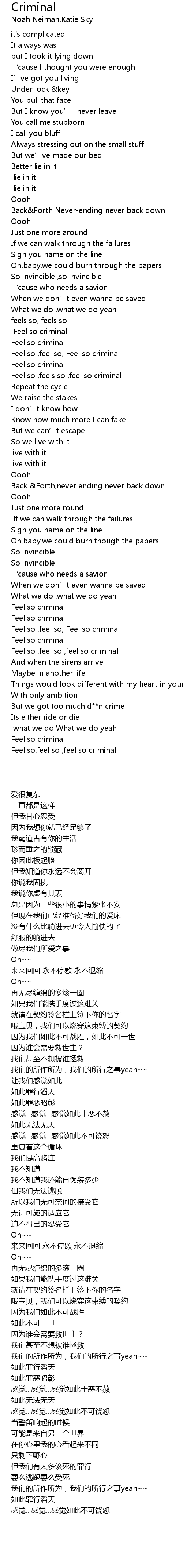 | [02:33.95] | Feel so , feel so , feel so criminal |