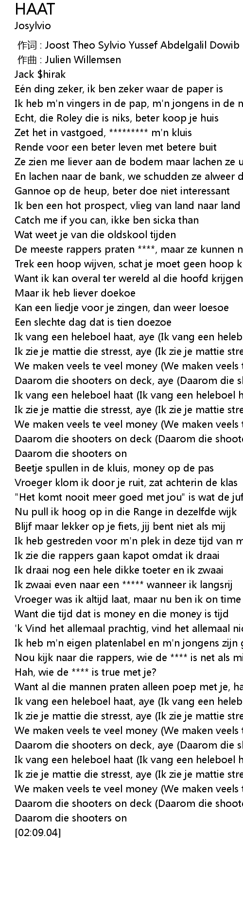 | [00:47.63] | Ik vang een heleboel haat, aye Ik vang een heleboel haat |