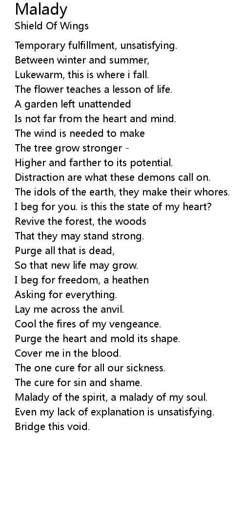 Malady of the spirit, a malady of my soul. |