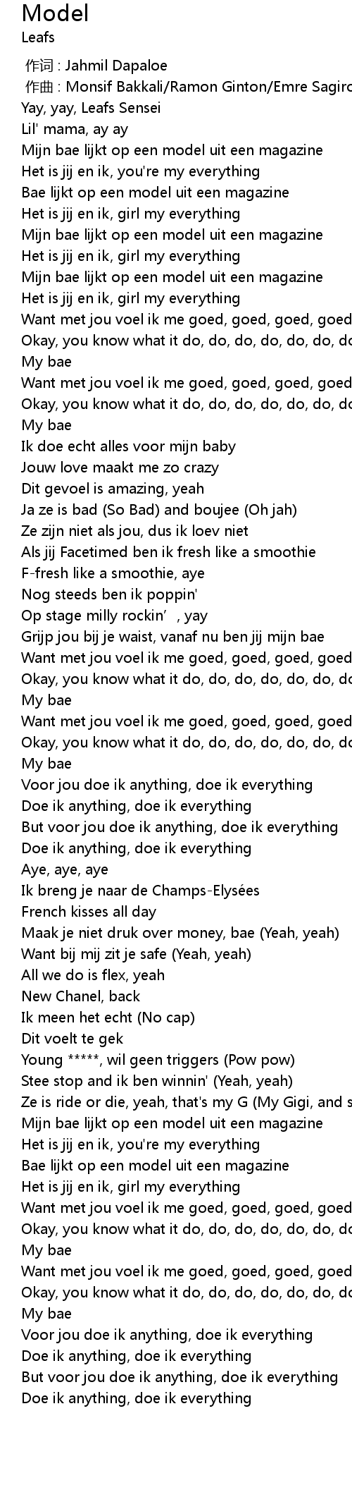 | [00:18.26] | Mijn bae lijkt op een model uit een magazine |