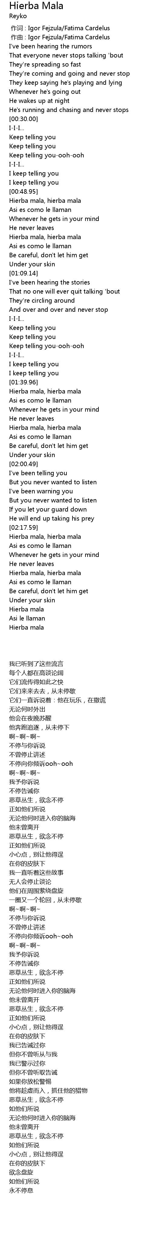 | [02:32.90] | Hierba mala, hierba mala |