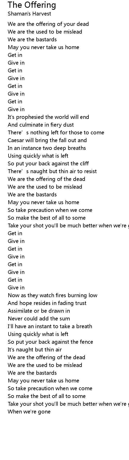 | We are the offering of your dead | |