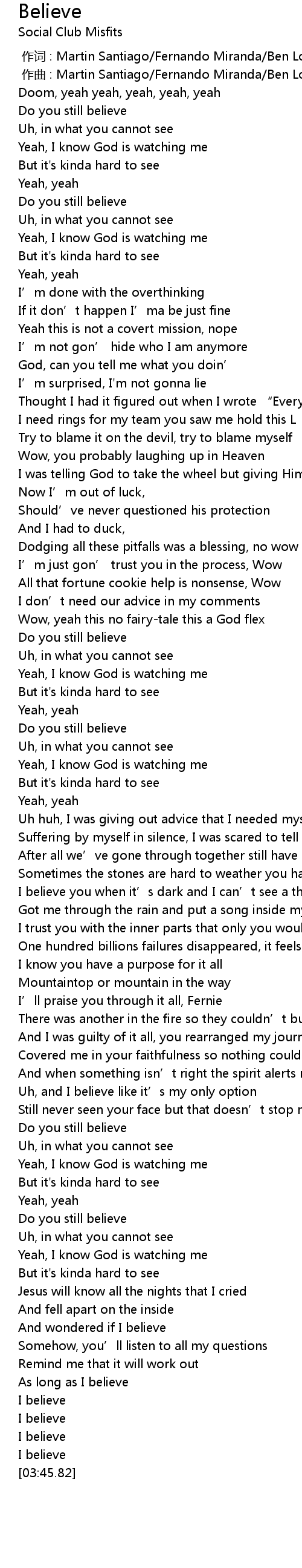 | [02:42.94] | Do you still believe |