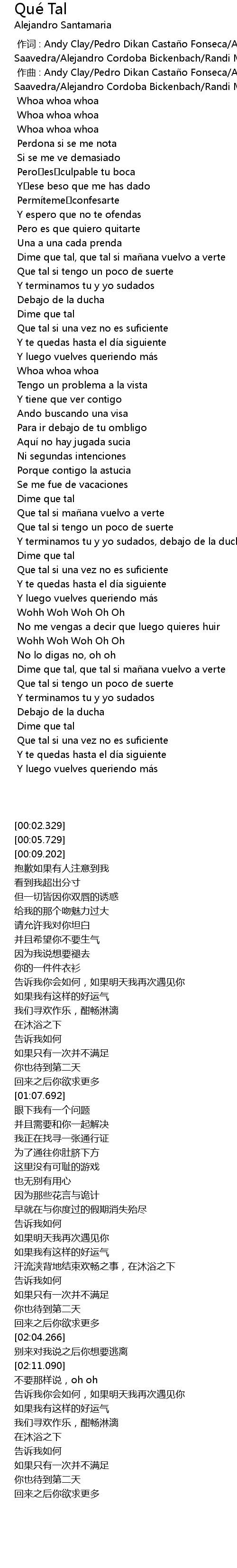 | [00:01.000] | zuò qǔ : Andy Clay Pedro Dikan Casta o Fonseca Andres Saavedra Alejandro Cordoba Bickenbach Randi MC |