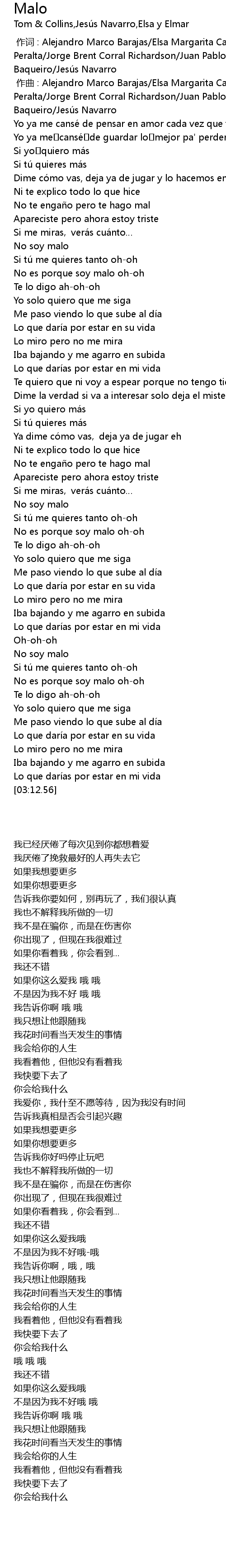 | 歌曲 | Malo |