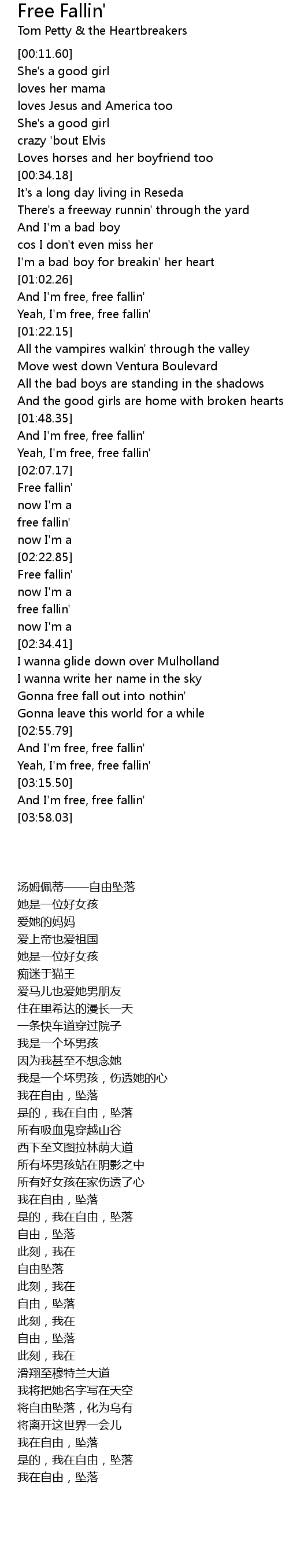 And I'm free, free fallin' |