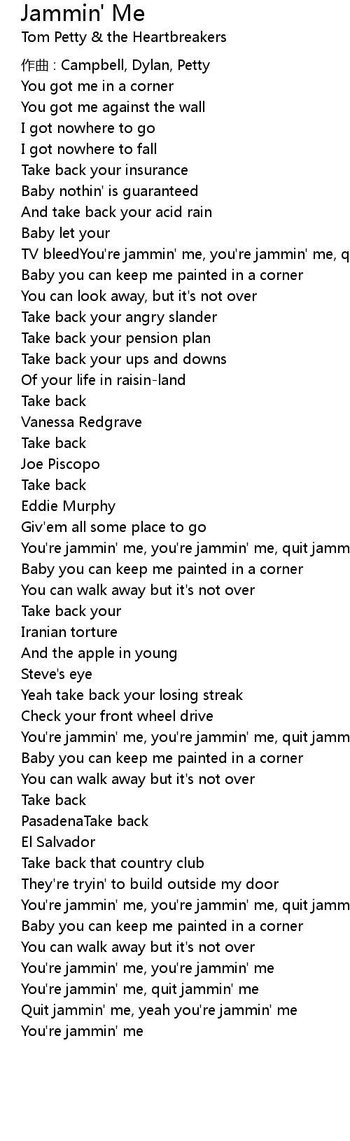 | You're jammin' me, you're jammin' me, quit jammin' me | |