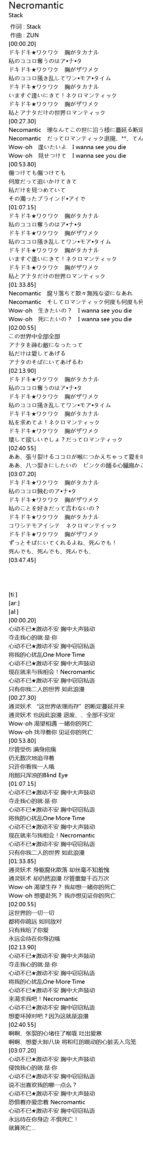| [02:30.45] | 私を求めてよ!ネクロマンティック |