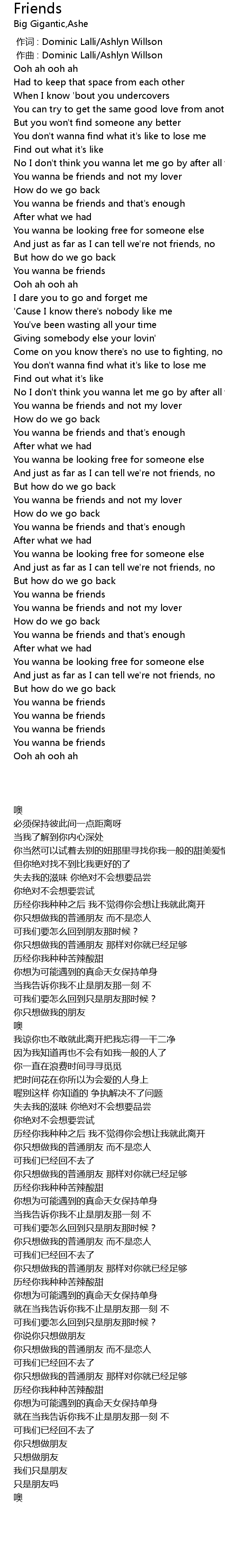 | [02:46.07] | You wanna be friends and that's enough |