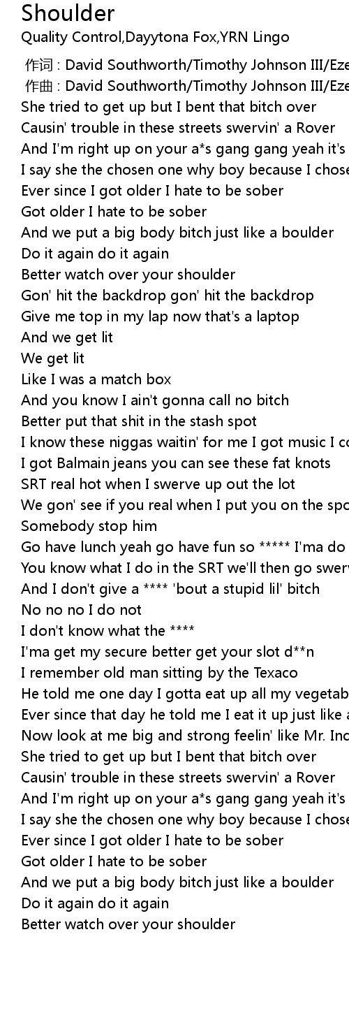 | [00:29.40] | And we put a big body bitch just like a boulder |