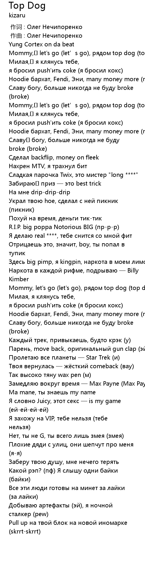 | [01:13.27] | Mommy, let's go (let's go), рядом top dog (top dog) |