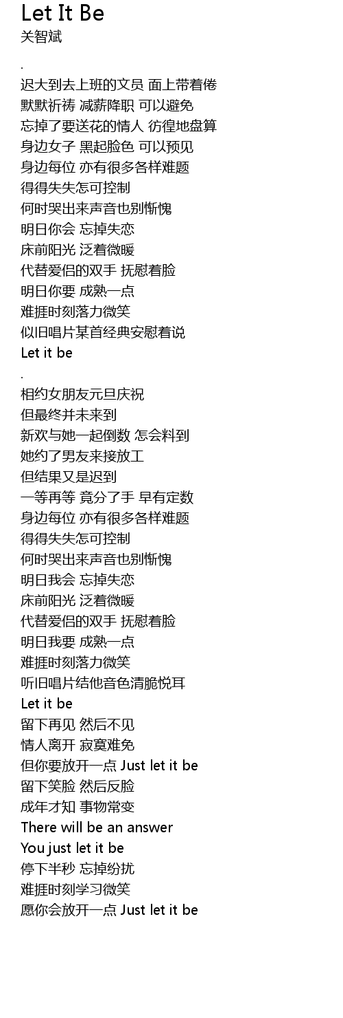 | [03:24.24] | 愿你会放开一点 Just let it be |