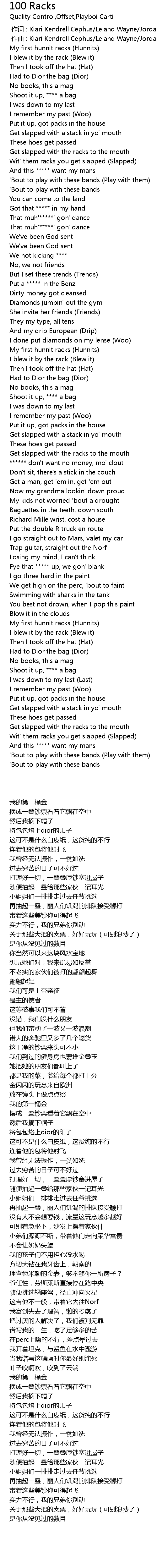 | 歌曲 | 100 Racks |
