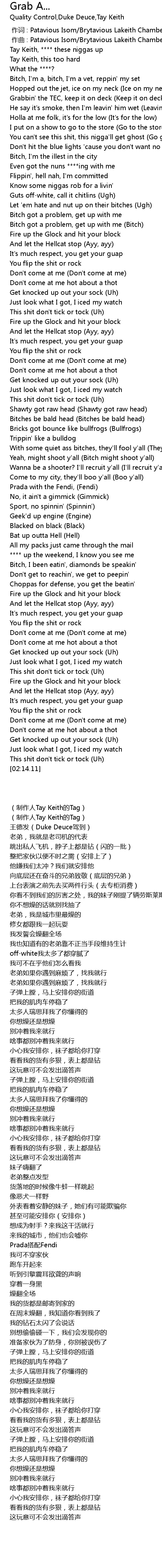 | [00:01.91] | (制作人Tay Keith的Tag) |