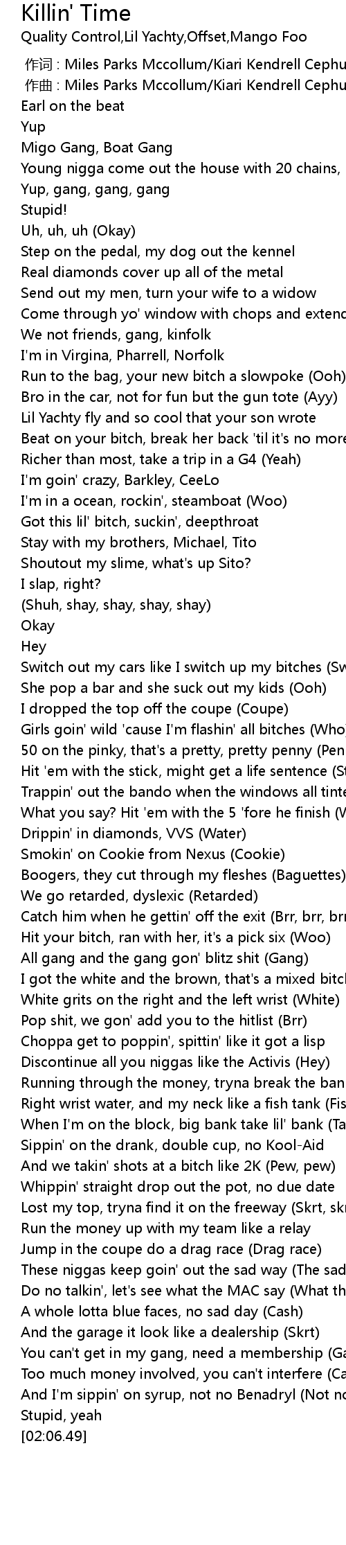 | [00:27.62] | Bro in the car, not for fun but the gun tote (Ayy) |