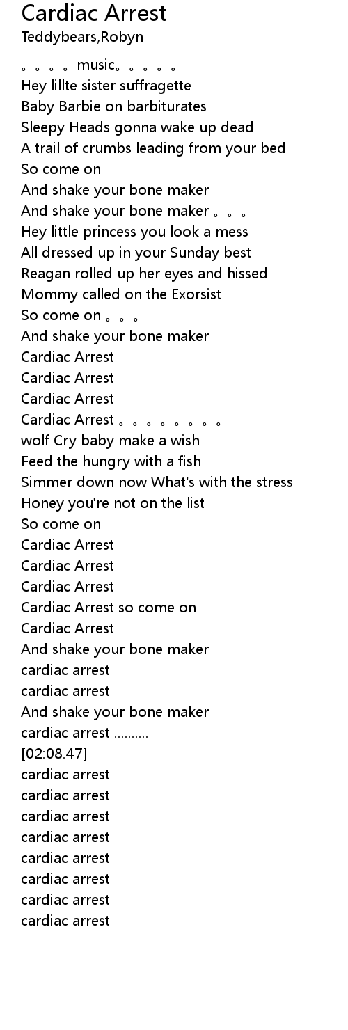 | [01:08.92] | Cardiac Arrest 。。。。。。。。 |