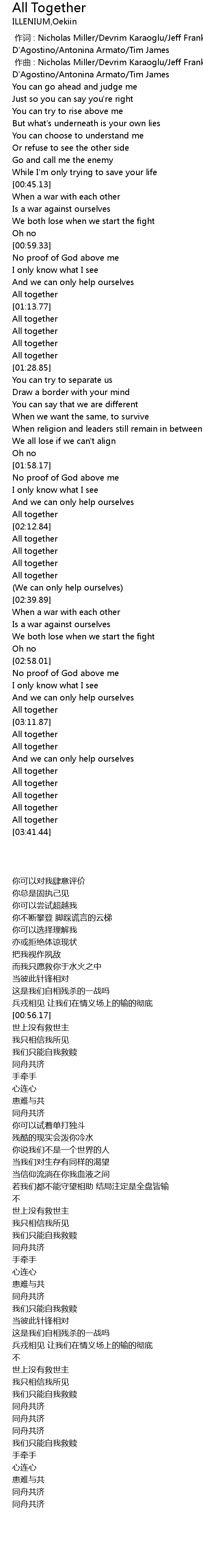 | [00:00.00] | zuò cí : Nicholas Miller Devrim Karaoglu Jeff Frank D' Agostino Antonina Armato Tim James |