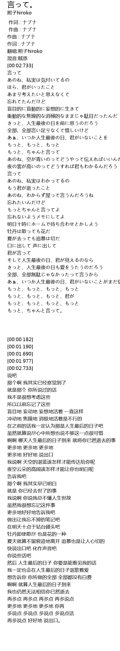 | [03:13.497] | 你说些话吧 |