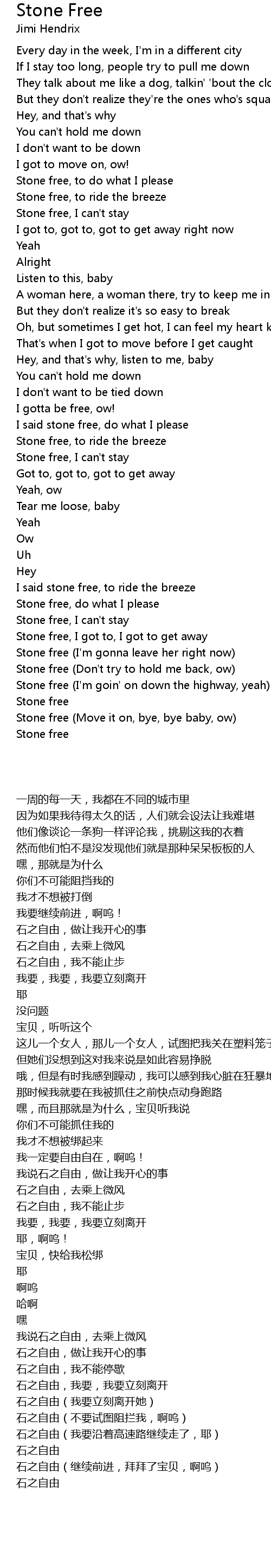 Stone free, to do what I please |