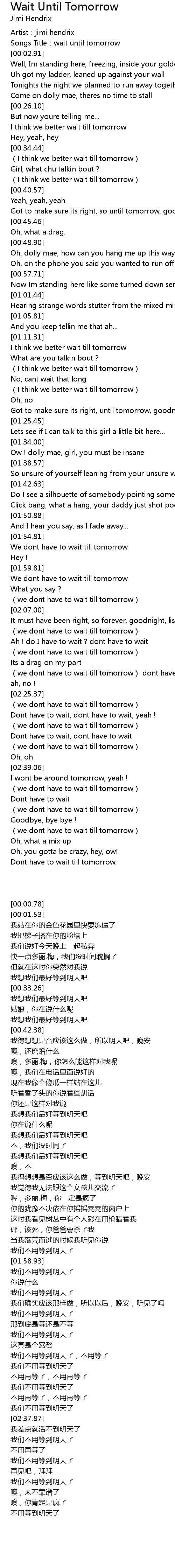 | [00:01.53] | Songs Title: wait until tomorrow |