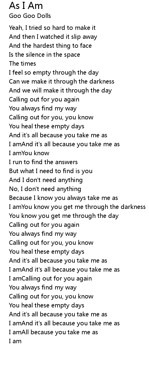 I amAll because you take me as |