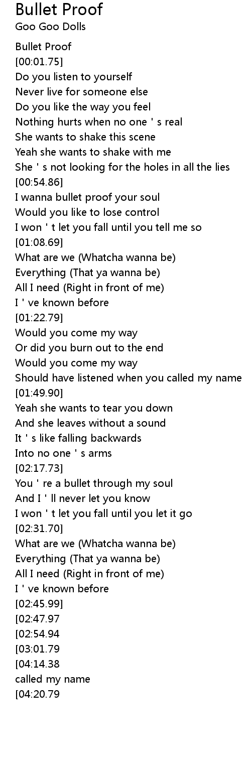 | [00:57.23] | I wanna bullet proof your soul |