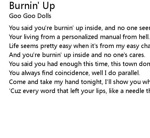 | You said you're burnin' up inside, and no one seems to tell. | |