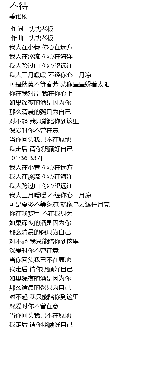 | [00:01.000] | 作曲 : 忱忱老板 |