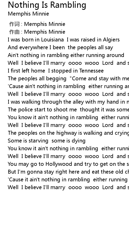 | [00:00.00] | zuò cí : Memphis Minnie |