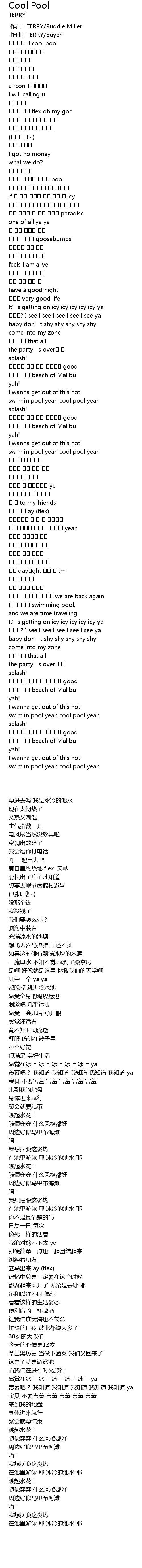 | [02:39.62] | swim in pool yeah cool pool yeah |