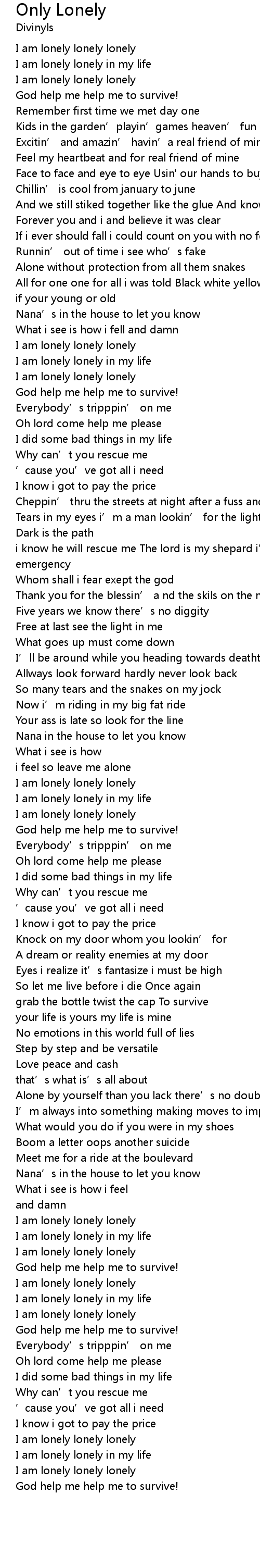 | [04:02.41] | God help me help me to survive! |