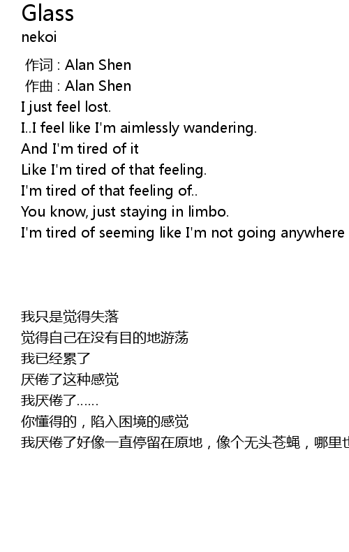 | [00:50.01] | 我厌倦了好像一直停留在原地,像个无头苍蝇,哪里也无法到达的感觉。 |