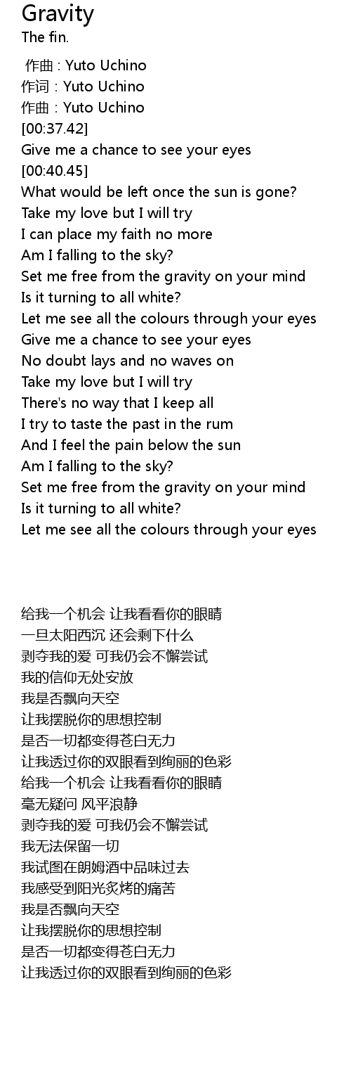 | [02:48.46] | Set me free from the gravity on your mind |