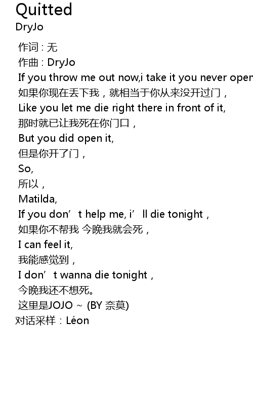 | [00:18.699] | If you don’t help me, i’ll die tonight, |
