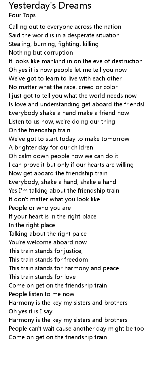 | Is love and understanding get aboard the friendship train | |