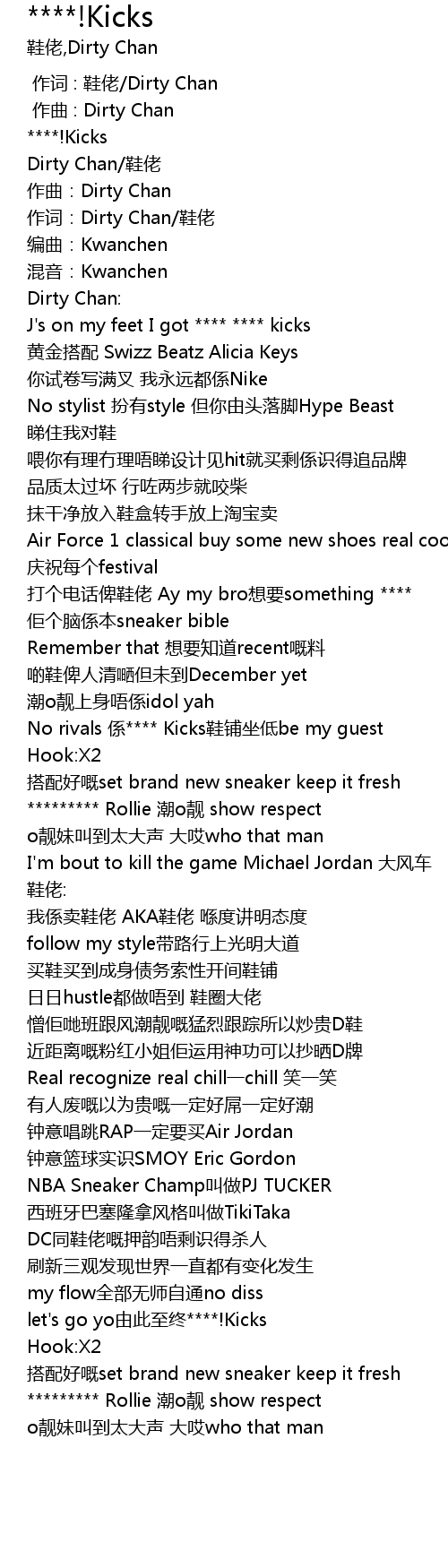 | [00:59.195] | No rivals 係**** Kicks鞋铺坐低be my guest |