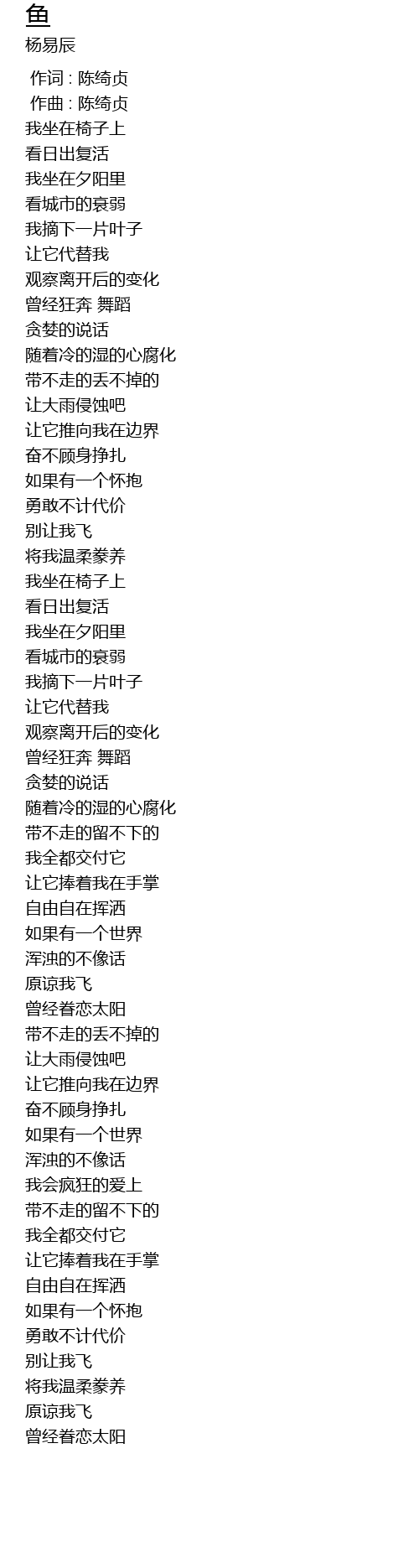 | [00:31.693] | wǒ zuò zài yǐ zi shàng |