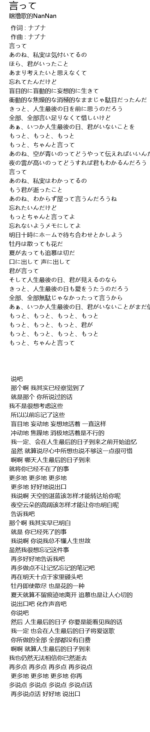 | [00:00.000] | 作词 : ナブナ |