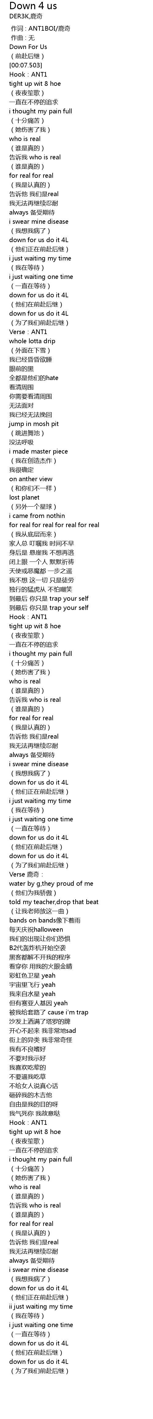 | [00:00.000] | 作词 : ANT1BOI/鹿奇 |