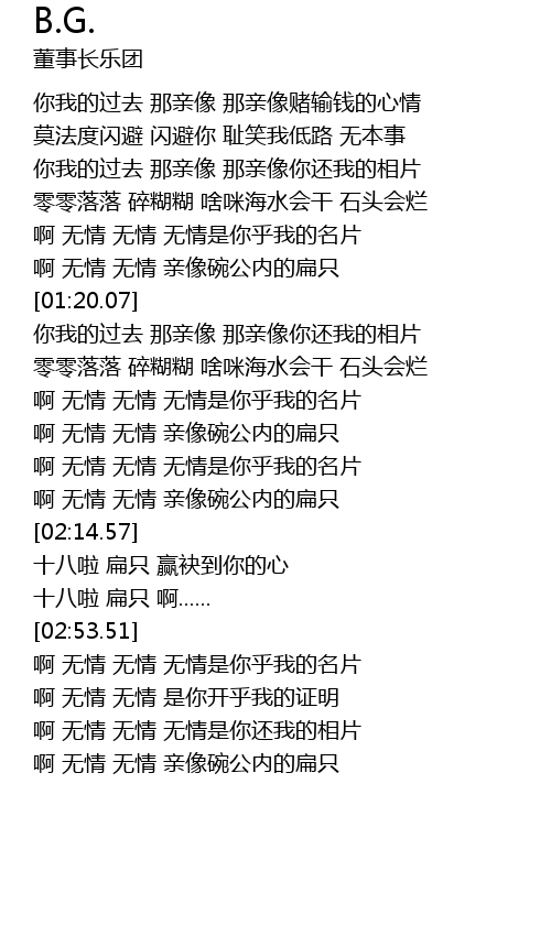 | [03:23.01] | 啊 无情 无情 无情是你还我的相片 |
