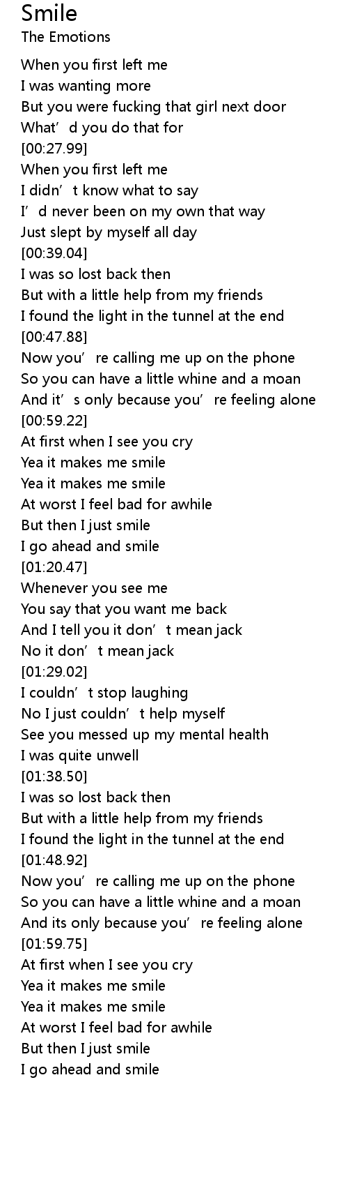 | [01:04.85] | Yea it makes me smile |